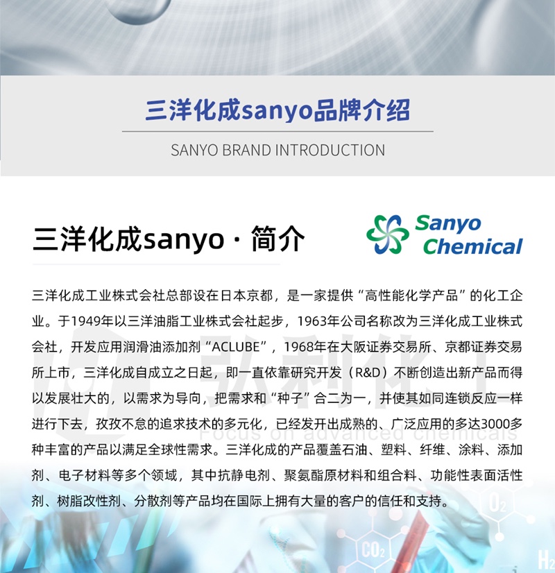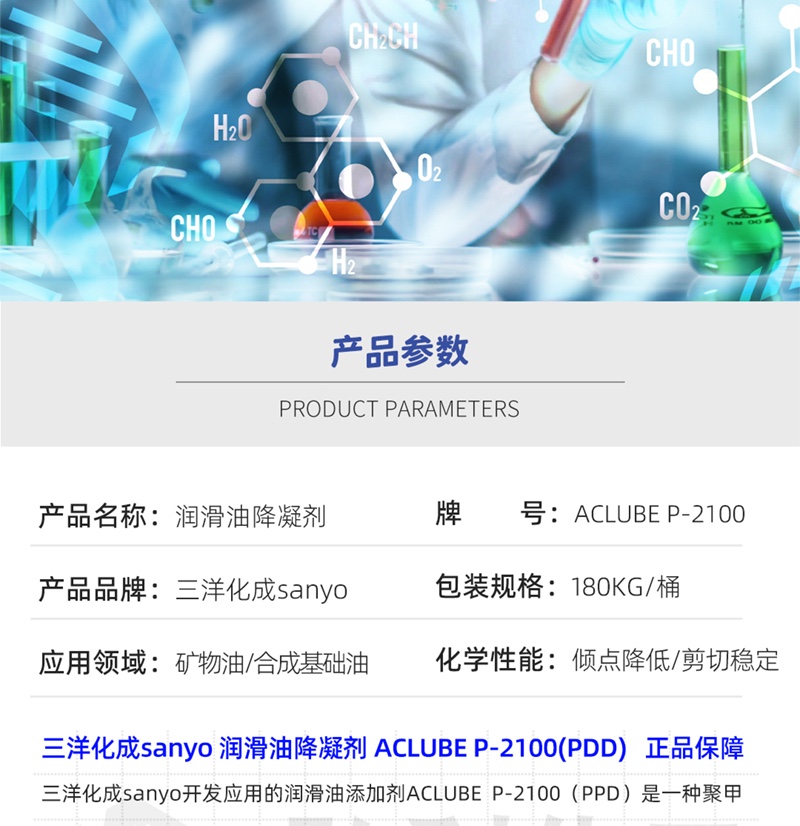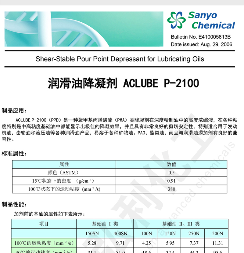 bg真人平台 化工为你详细介绍三洋化成sanyo bg真人平台降凝剂 ACLUBE P-2100的产品详情,包括三洋化成sanyo品牌下的所有产品的用途、型号、范围、图片、新闻及价格。同时bg真人平台 还为您精选了相关的行业资讯、价格行情、展会信息、图片资料等,在全国地区获得用户好评,欲了解更多详细信息,请点击访问。